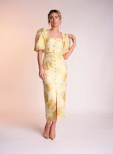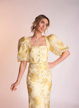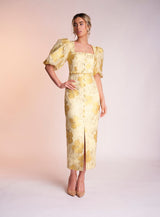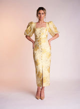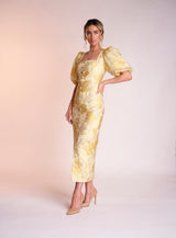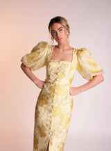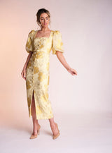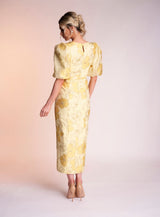 Made from the most stunning printed jacquard material the Naoise dress is sure to turn heads. It's beautiful yellow colour is perfect for that summer occasion.